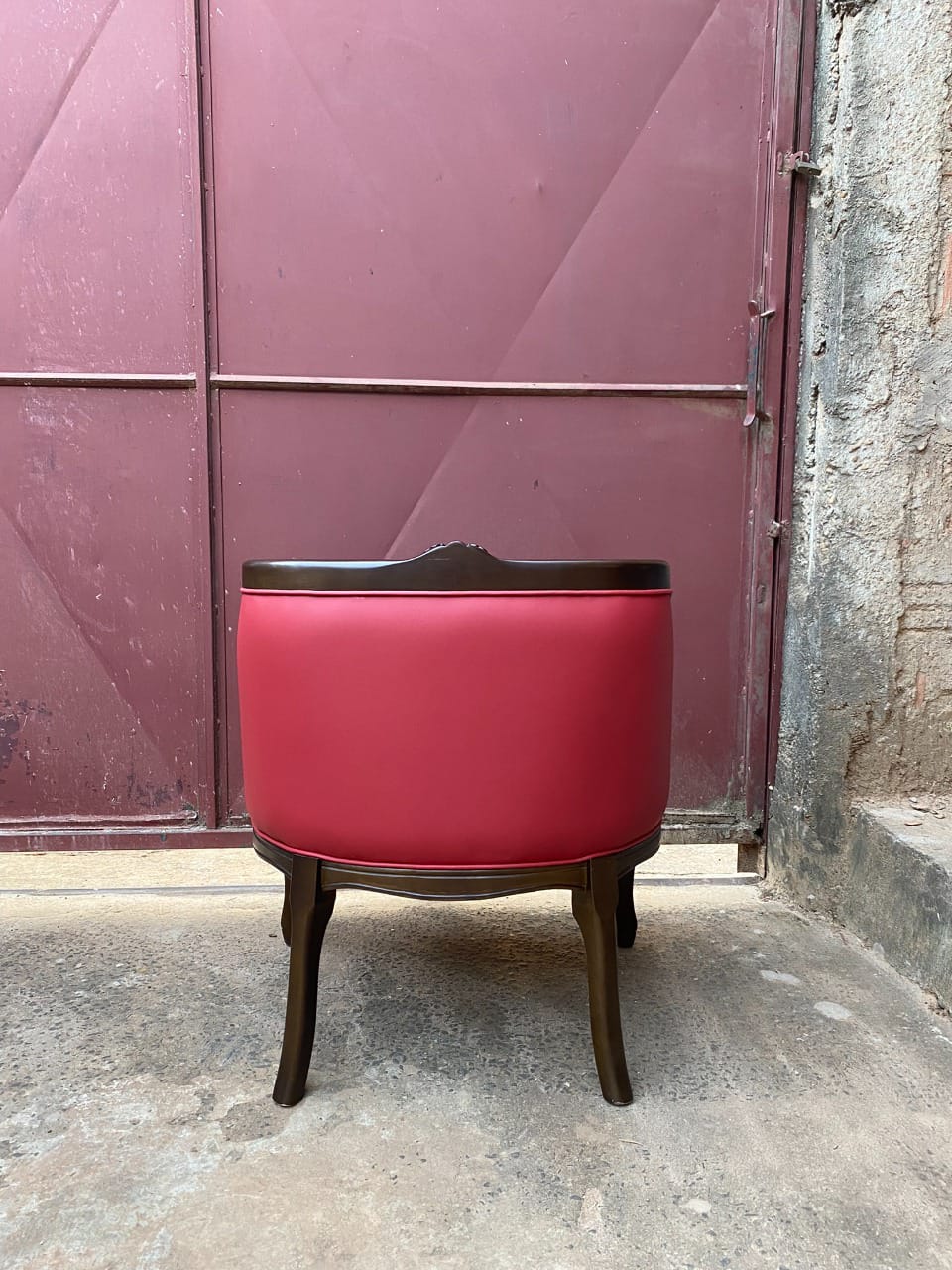 Cadeira em madeira especial com estofamento de primeira qualidade e pintura automotiva brilhante. Acabamento refinado, fabricação própria e garantia de fábrica.